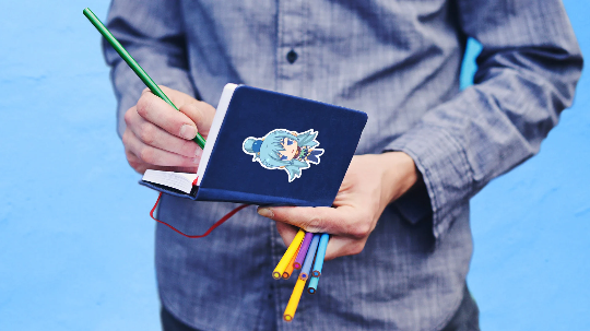 Stickers are all custom-drawn. This sticker's dimensions are approximately 2"w x 3" h