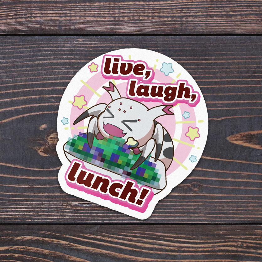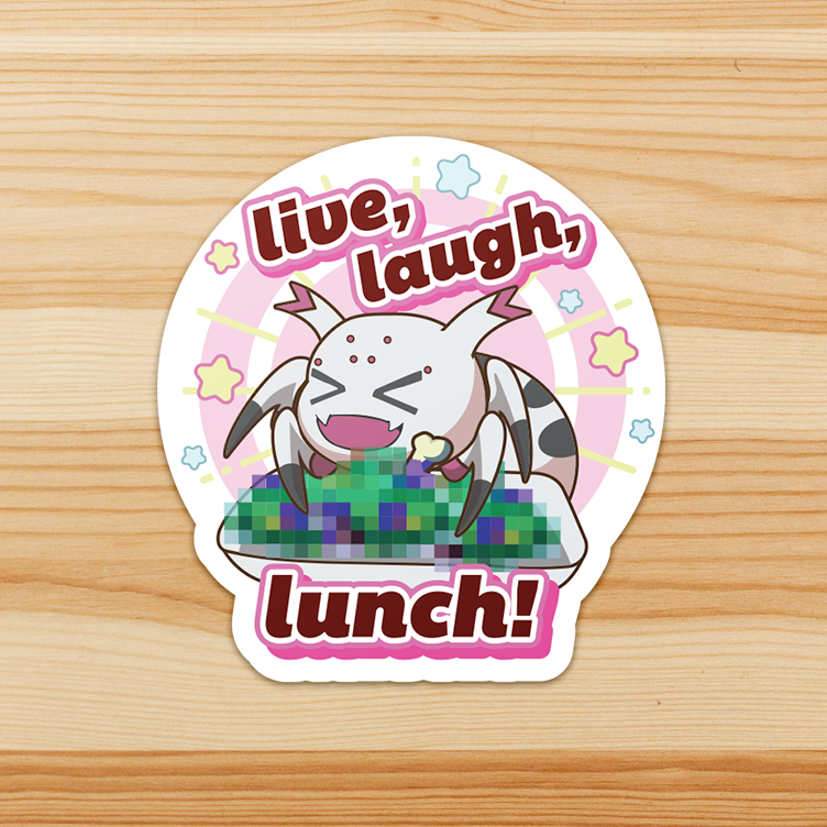 Stickers are all custom-drawn original designs. This sticker's dimensions are approximately 3.5" W
