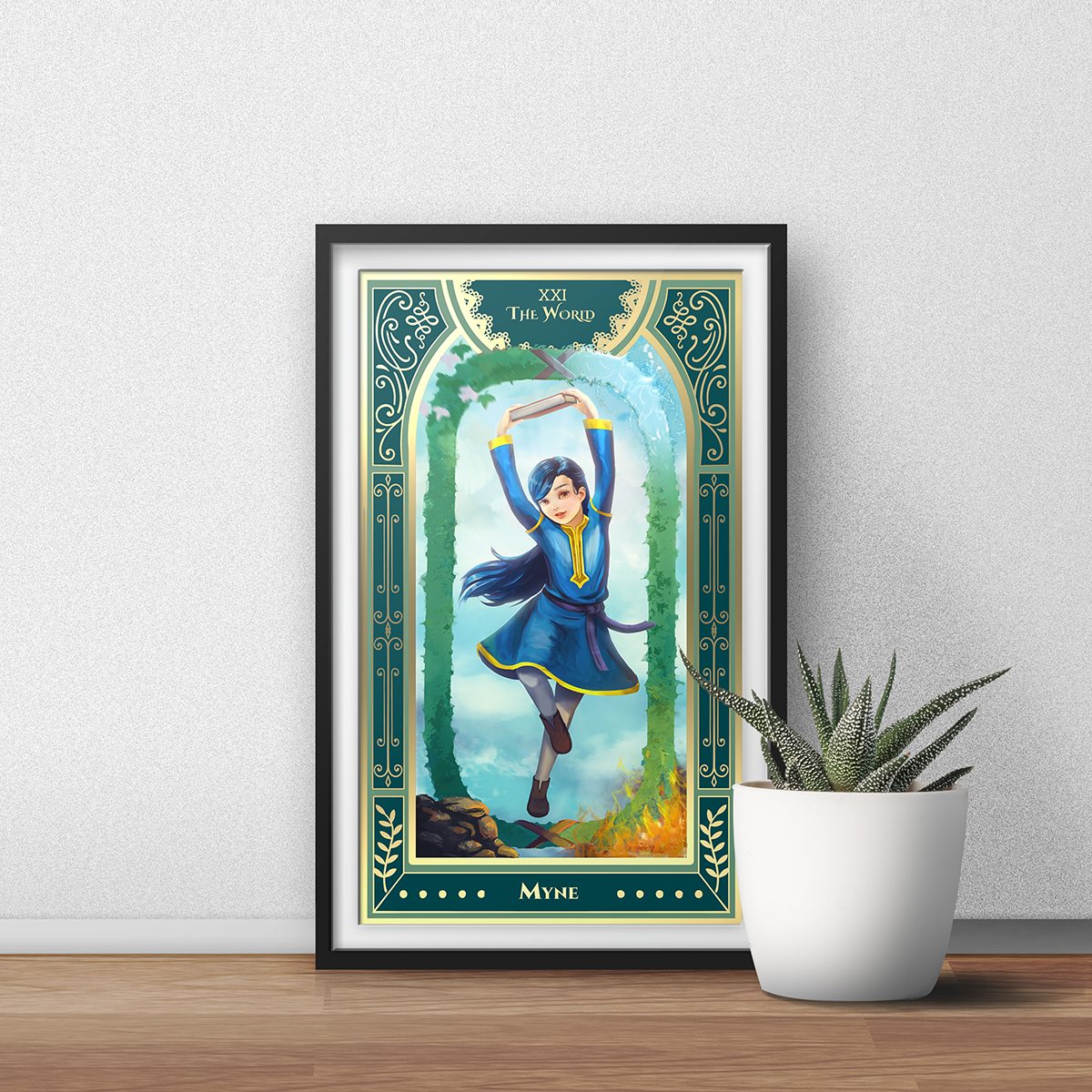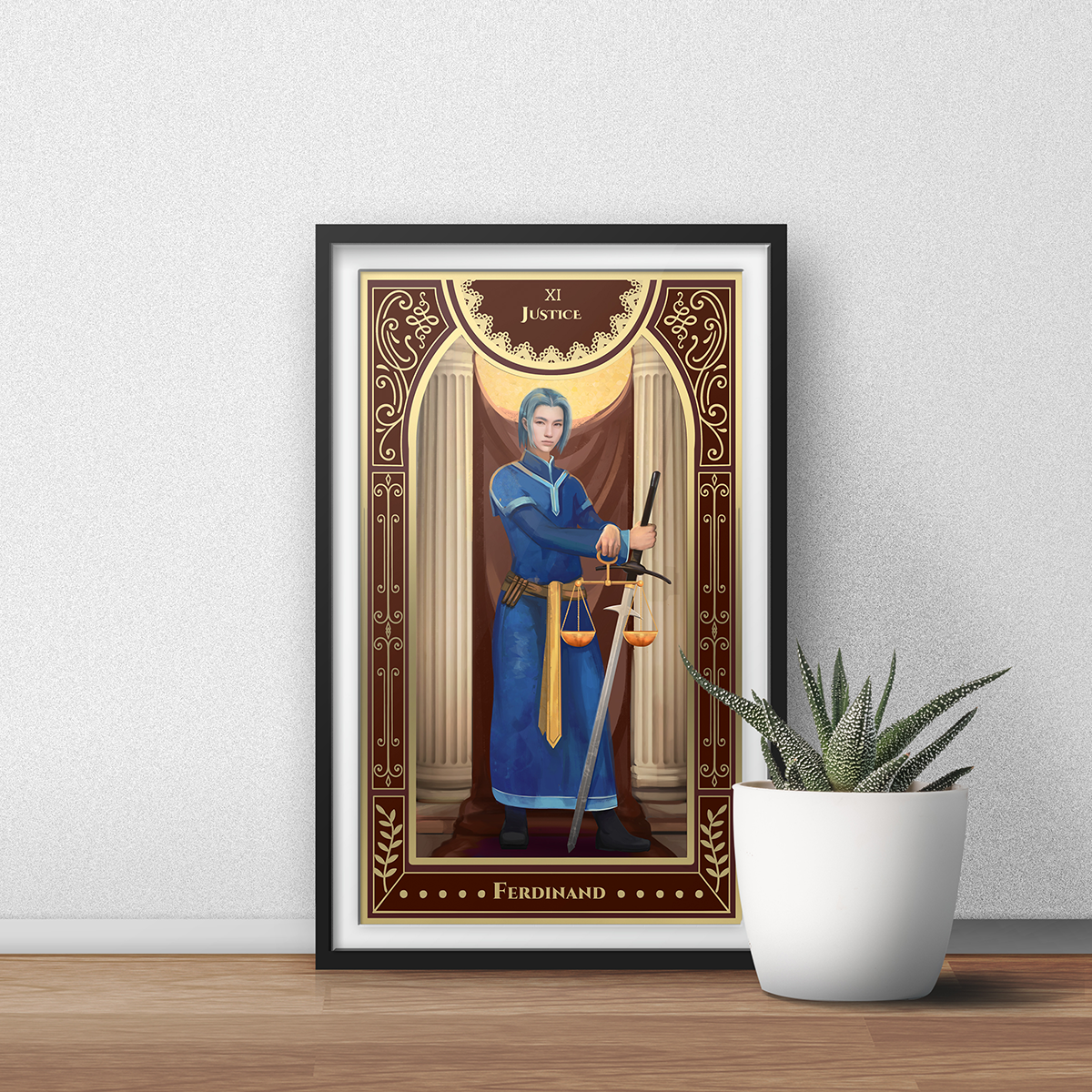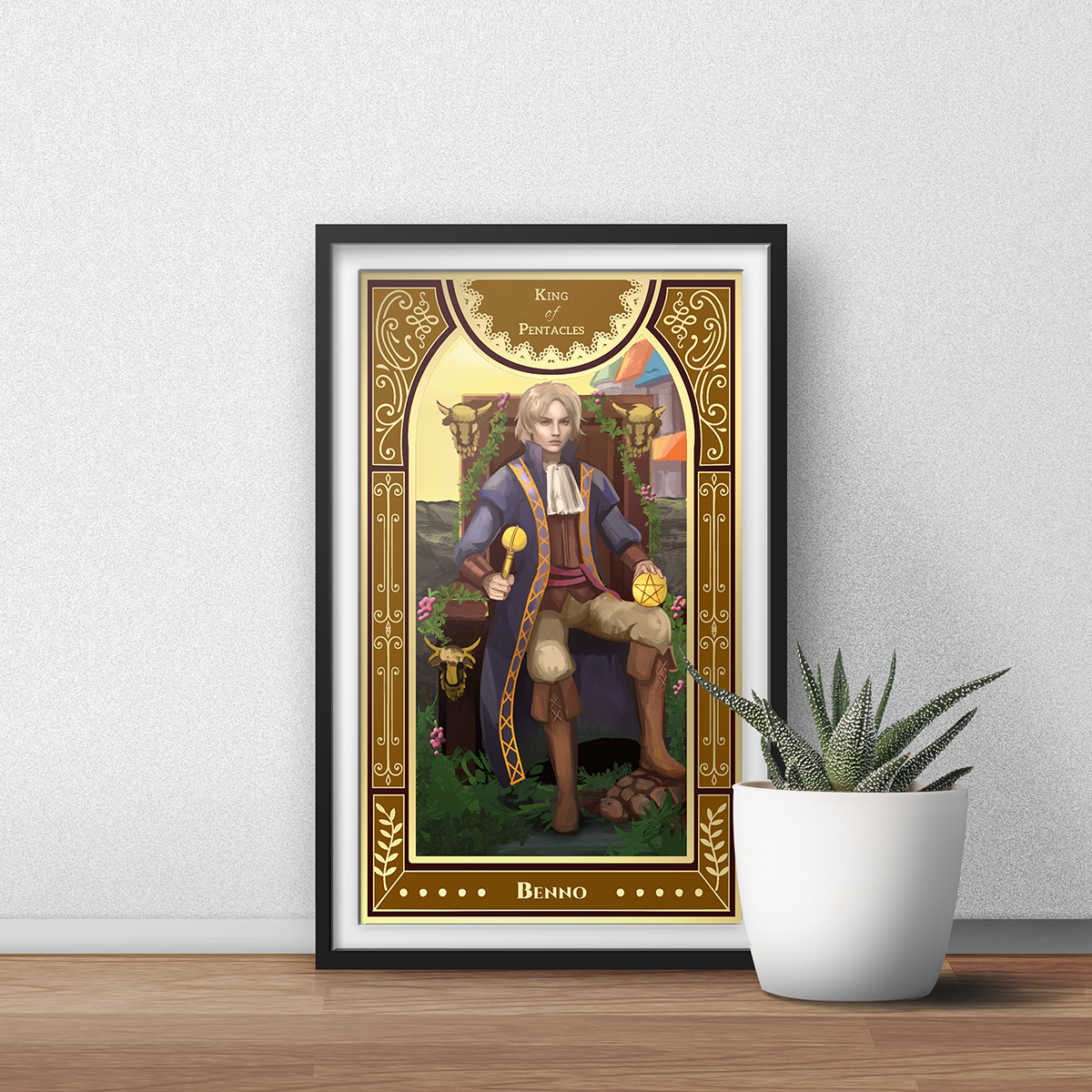 Each character is depicted in the traditional tarot deck fashion, complete with symbols reflective of their meaning. Choose from the cast of Ascendance of a Bookworm characters digitally painted in original oil painting style. Gold-ink gilded collectors prints for my Isekai Tarot Deck. Frame is not included in the purchase.