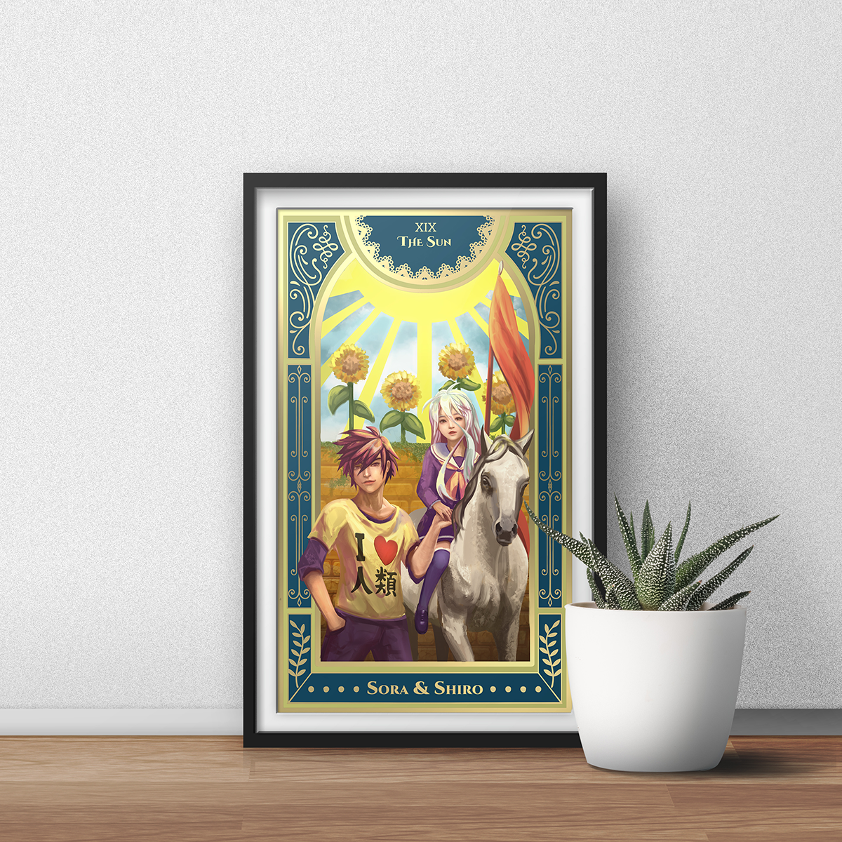 No Game No Life Art Print | Gold Metallic Ink | Sora & Shiro | Isekai Tarot Collector Print