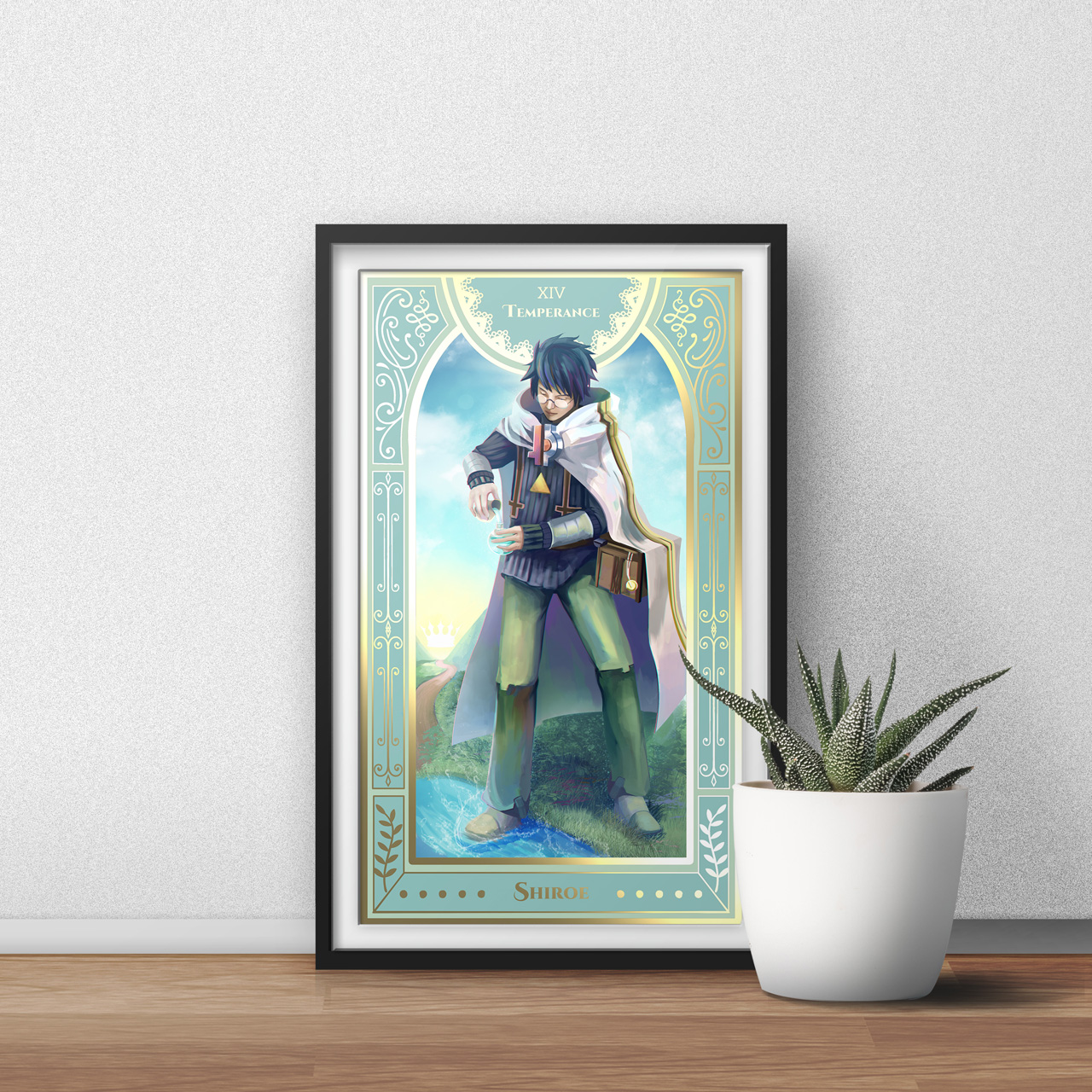 Each character is depicted in the traditional tarot deck fashion, complete with symbols reflective of their meaning. Gold-ink gilded collectors prints for my Isekai Tarot Deck. Frame is not included in the purchase.