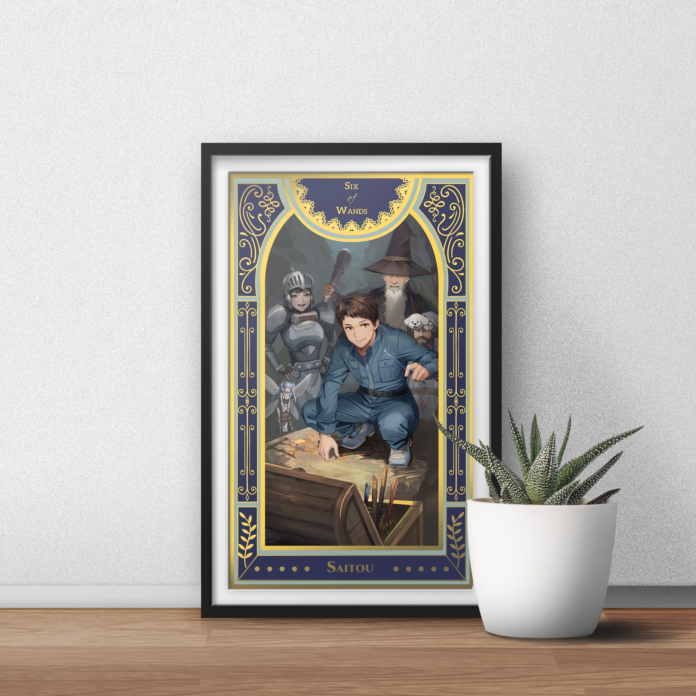 Handyman Saitou Art Print | Gold Metallic Benriya Saitou-San Painting | Isekai Tarot Collector Print