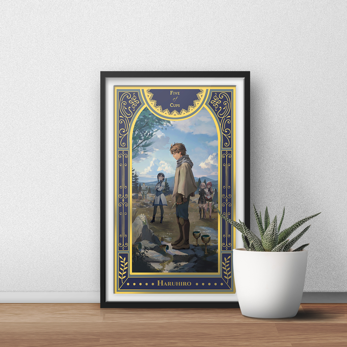 Haruhiro Art Print | Gold Metallic Hai to Gensou no Grimgar Painting | Isekai Tarot Collector Print